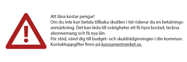 Månadskostnaden beror på belopp och vald löptid. Vi visar alltid en tydlig kostnadsbild innan du godkänner något.